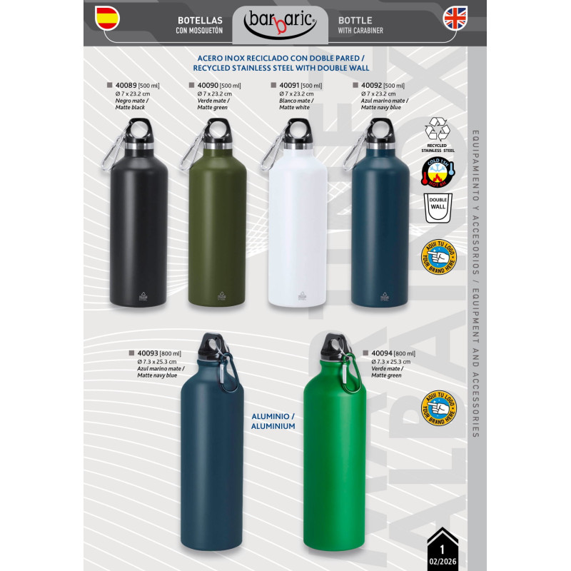 BOTELLA MOSQUETÓN ACERO INOXIDABLE RECICLADO