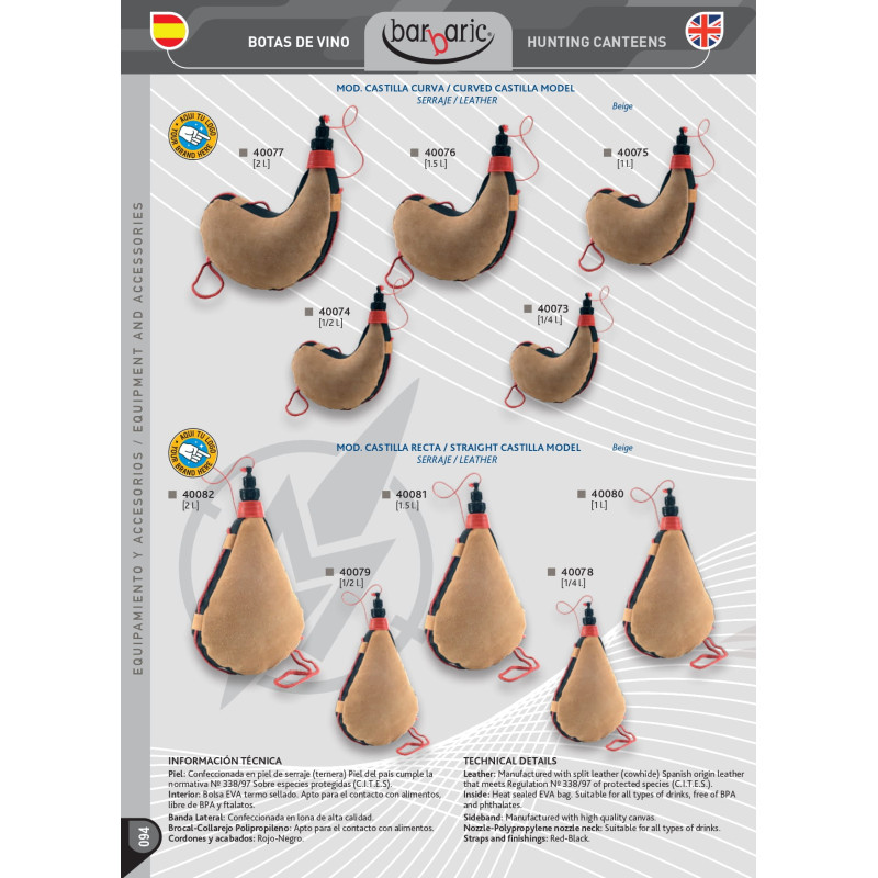 40081 Bota vino recta modelo castilla de la marca Barbaric, material de serraje, capacidad 1,5 L.