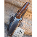 Cuchillo de caza o machete Caiman de J&V, hoja de acero inoxidable mv-58, mango en madera de cocobolo, dureza 56-58hrc, tamaño de hoja 12 cm, mango 12,5 cm, ancho de pala máximo 3,5 cm. cremallera en la parte trasera del lomo para ayudar que no se resbale en la mano con el corte fino. con funda de cuero marrón, precio de fabrica.