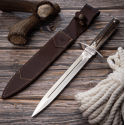 113-C Daga o machete de montería Cudeman, hoja de acero molibdeno vanadio; dureza del acero: 54/56 hrc; longitud de hoja: 24 cm; longitud de mango: 13 cm; longitud total: 37 cm; grosor de hoja: 5 mm; mango de ciervo pulido; incluye funda de cuero marrón; peso cuchillo: 360 gr