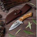 135-L Cuchillo desollador o machete Cudeman modelo Colibrí II. Hoja de acero molibdeno vanadio; dureza del acero: 54/56 hrc; longitud de hoja: 8,5 cm; longitud de mango: 9,5 cm; longitud total: 18 cm; grosor de hoja: 3 mm; mango: madera de olivo; funda: cuero marrón (incluida); peso cuchillo: 110 gr.