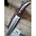 CR51 Cuchillo de joker GAMO con hoja de acero mova, mango de madera roja , todo una pieza hasta atrás, tamaño de hoja 15 cm, tamaño total 27 cm, con funda de piel.