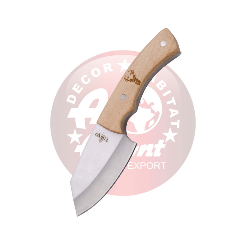 Cuchillo de caza Third H0402M, con hoja de acero 440 de 8 cm acabada en satinado, mango de madera de arce, con funda de nylon de alta densidad y piel. Ref. H0402M