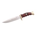 RANGER-14R Cuchillo de monte de Muela, hoja de acero Molibdeno vanadio, mango de madera de coral y virola de latón, tamaño de hoja 145 mm, mango de 125 mm, con funda de piel.