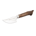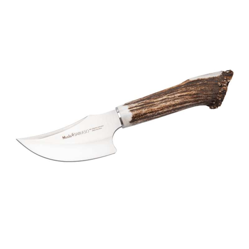 SABUESO-11S Cuchillo desollador de Muela, hoja de acero 1.4116, mango de asta de ciervo con virola de latón, tamaño de hoja 110 mm, mango de 120 mm, con funda de piel.