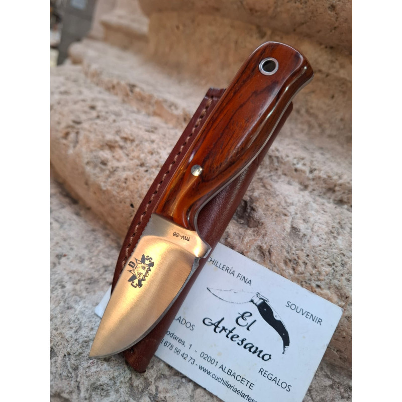 SUPER OFERTA HOBBIT-COCOBOLO : Cuchillo de CDS-J&V hecho a mano,al 50% de descuento salia a 56e ahora a 35euros de acero mova 58,grosor de hoja 3,5mm, tamaño de hoja 65mm, tamaño total 150mm,mango de COCOBOLO ,con funda de piel