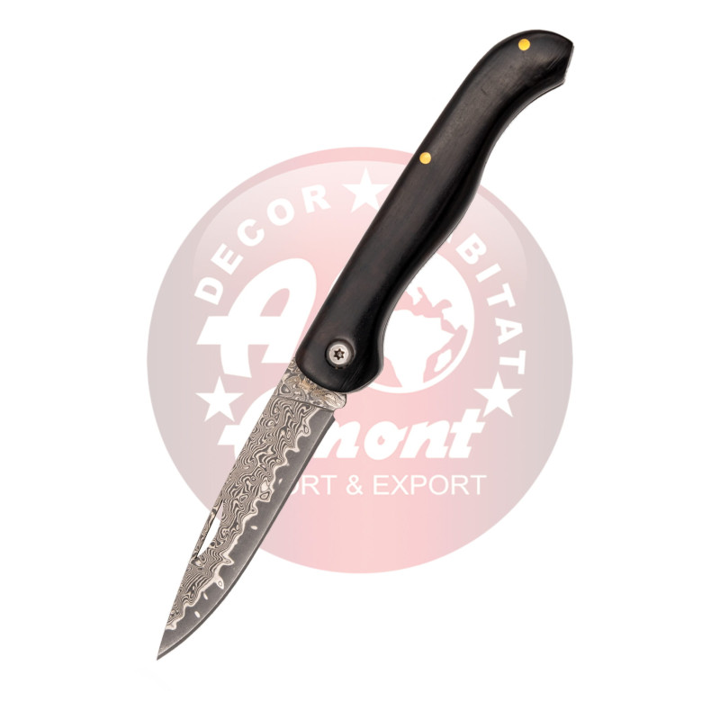 Navaja de acero de damasco Tramuntana N202E, mango de madera de ébano y hoja de acero de damasco VG10 de 67 capas de 8 cm. Con caja de presentación. Ref. N202E