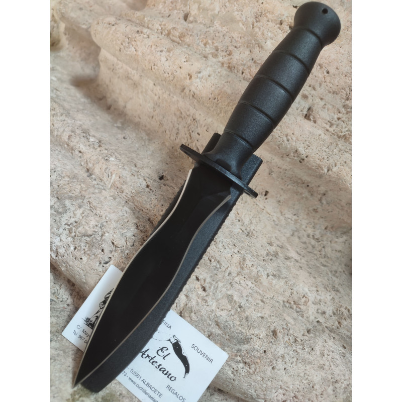 Cuchillo de monte o machete, hoja de acero inox pavonada, mango de abs, tamaño de hoja 15,5 cm, con su funda de abs.