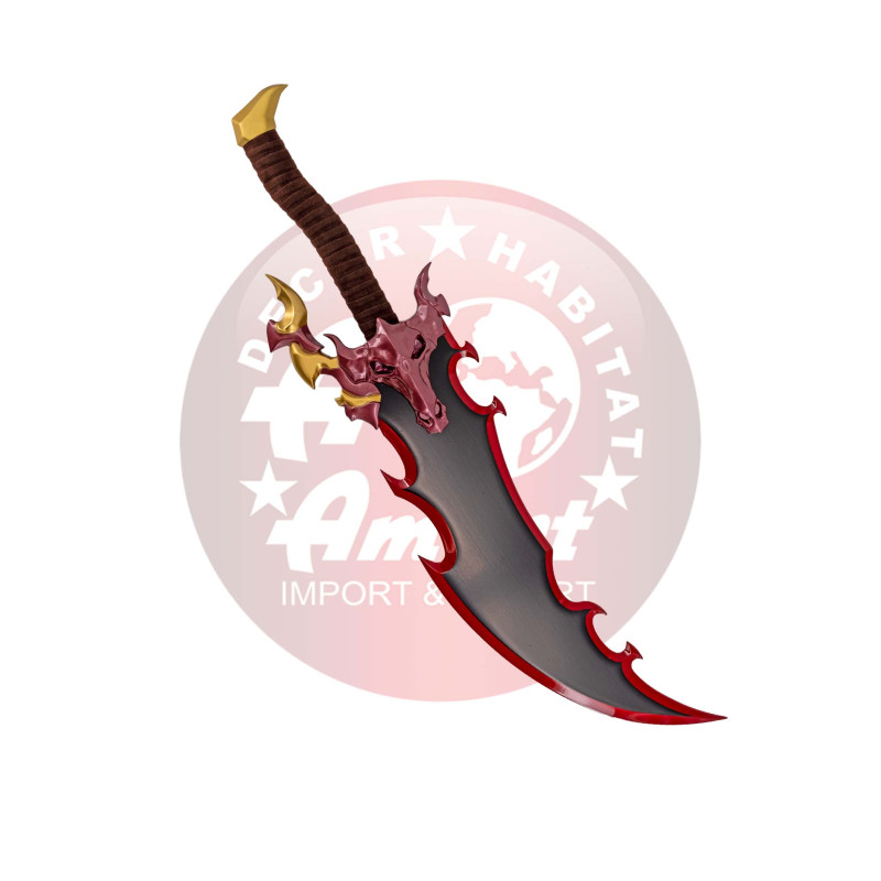 Daga S0366 Modelo de daga del Rey Demonio de Solo Leveling, réplica , con un tamaño total de 62 cm, hoja de acero acabdo en negro con el corte en rojo, guarda con cabeza de dragón y el mango terminado en polipiel marrón. Con soporte. Ref. S0366