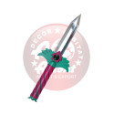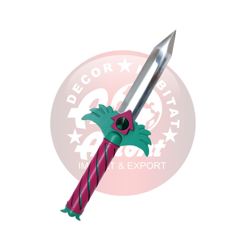 Daga S8106 del Juego del Calamar, réplica hoja de acero acabado en satinado con unas dimensiones de 31 cm, no afilado. Mango de plástico púrpura y guarda de plástico verde con detalle en púrpura y piedra en el centro. Ref. S8106