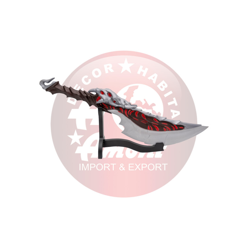 Daga S3046 Modelo de daga del Valorant, réplica, con un tamaño total de 54,5 cm, hoja con detalles rojos y marrones y corte en plata, mango en marrón. Con soporte. Ref. S3046