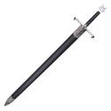Tipo de Espada Espada Larga Color NEGRO Tamaño hoja 80cm Filo Sin filo Grosor hoja 3mm Tamaño Mango 23cm Material hoja Acero Material mango Metal Peso 1880g Tamaño total 112cm Material guarda Metal Vaina Madera