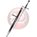 Espada S5116 Modelo de Andúril, replica con un tamaño total de 137 cm, hoja de bambú con las runas, mango acabado en níquel y dorado con una vaina acabada en negra con detalles en níquel y dorado, con una placa con runas en la parte posterior de la vaina. Ref. S5116