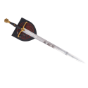 Esta espada es el legado de los "Negros" y del heredero al Trono de Hierro con la elegante Espada de Jacaerys Velaryon (Modelo S0380). Esta distinguida réplica está inspirada en el arma portada por el primogénito de Rhaenyra Targaryen en la exitosa serie La Casa del Dragón. Es una pieza diseñada para capturar la nobleza y la determinación del joven príncipe jinete de dragón, convirtiéndose en un artículo imprescindible para coleccionistas y seguidores de la saga de George R.R. Martin.