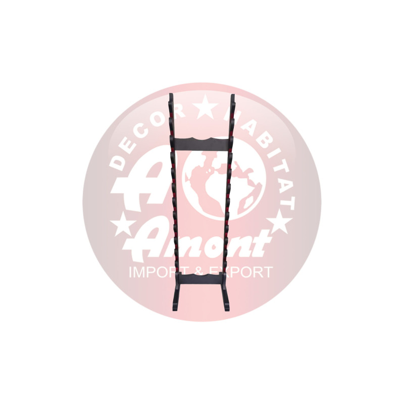 Soporte de pie S5118 para doce mini katanas hecho en madera negra y con tercipoleo rojo en la zona de apoyo de las katanas de 31 cm × 31,5 cm x 109 cm. Ref. S5118