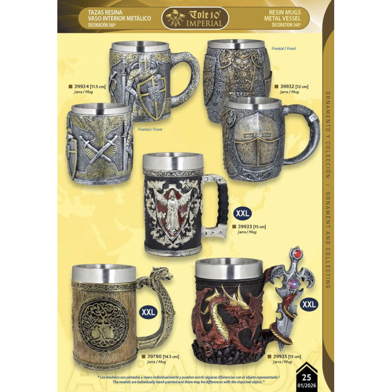 39934 Jarra templaria decorada, taza metálica, tamaño 11,5cm
