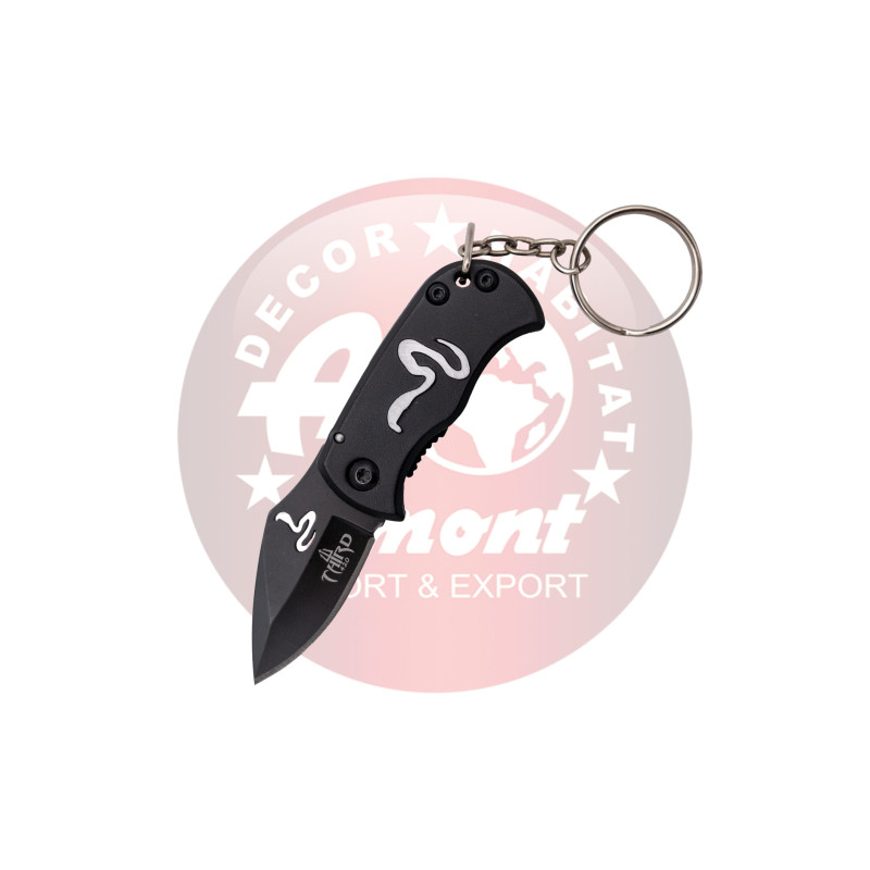 Navaja llavero Third N201C hoja de 4 cm acabado en negro con silueta de cobra cortada a láser, mango en aluminio negro con detalle de cobra. Ref. N201C