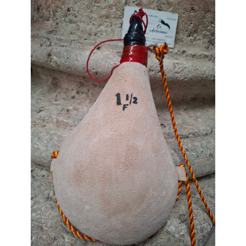 BOTA DE VINO DE PEZ LITRO Y MEDIO RECTA CLARA PIEL DE CABRA