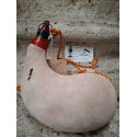 Bota de vino de pez, toda hecha a mano artesana, de 1litro curva clara, curtida en piel de cabra vegetalmente, interior de pez fabricada a base de resinas naturales pino y enebro, brocal elaborado en baquelita, con cordón para llevarla colgada, de primera calidad, capacidad de 1 litro.