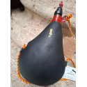 Bota de vino de pez, toda hecha a mano artesana, de 1 litro negra, curtida en piel de cabra vegetalmente, interior de pez fabricada a base de resinas naturales pino y enebro, brocal elaborado en baquelita, con cordón para llevarla colgada, de primera calidad, capacidad de 1 litro.