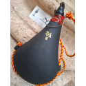 Bota de vino de pez, toda hecha a mano artesana, de 3/4 negra, curtida en piel de cabra vegetalmente, interior de pez fabricada a base de resinas naturales pino y enebro, brocal elaborado en baquelita, con cordón para llevarla colgada, de primera calidad, capacidad de 750cl