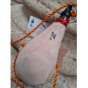 Bota de vino de pez toda hecha a mano artesana, 3/4 clara, curtida en piel de cabra vegetalmente, interior de pez fabricada a base de resinas naturales pino y enebro, brocal elaborado en baquelita, con cordón para llevarla colgada, de primera calidad, capacidad de 750cl