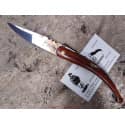 Navaja punta con hoja de acero inox, lomo de la hoja adornada, mango en stamina roja, remachado con remaches de latón, muelle trabajado en artesanía, sistema de cierre de palanquilla, tamaño de hoja 8,5 cm.