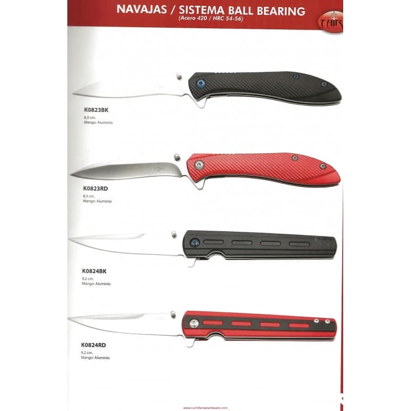 K0824RD Navaja Third K0824RD mango de aluminio rojo. Hoja de acero 420 de 9.3 cm acabado satinado. Con clip Ref. K0824rd