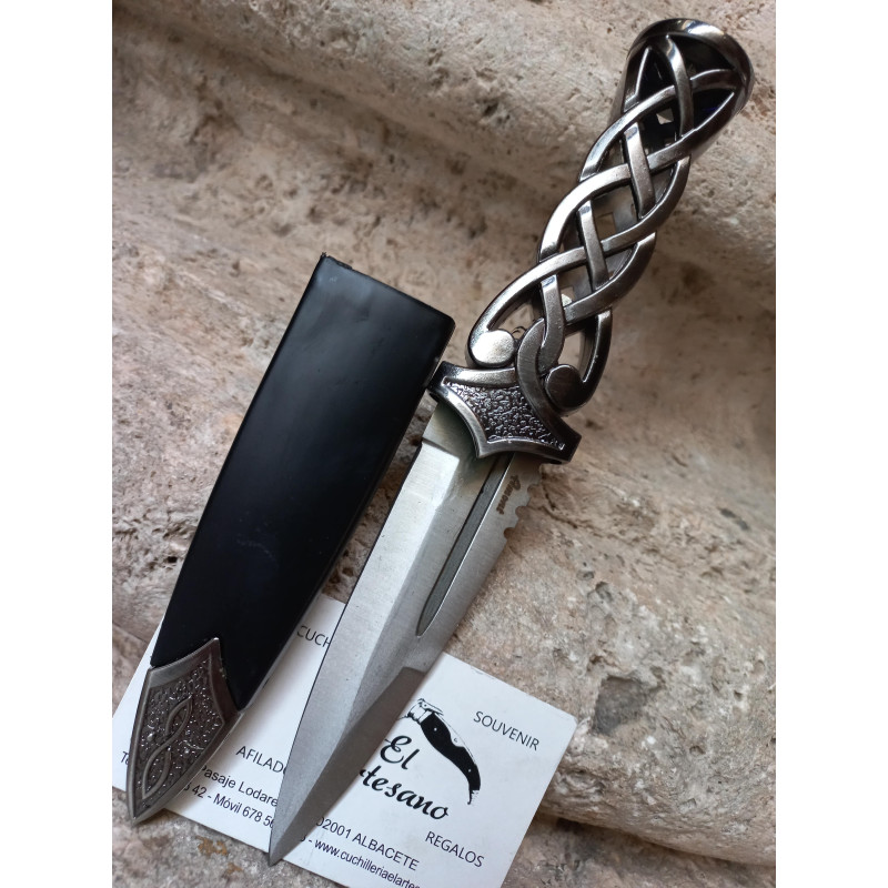 Daga S0319A daga de 23 cm con mango acabado en níquel trenzado con piedra azul en el pomo, con funda negra. Ref. S0319A