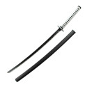 Tipo de Espada Katana Color NEGRO Tamaño hoja 68cm Filo Sin filo Grosor hoja 4mm Material hoja Acero Peso 1000g Tamaño total 103cm Material Tsuba Metal Características Tsuka encordado Material Tsuka Madera Tamaño Tsuka 28cm Vaina Madera -
