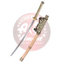 Tachi Decorativo S5111 de 102 cm hoja de acero acabado en satinado, con vaina de madera clara y trenzado en verde, blanco, amarillo y negro. Sin soporte. Ref. S5111