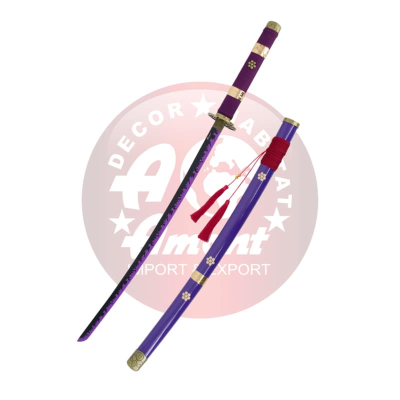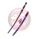 Katana S5074 Katana Enma de Zoro de One Piece réplica acabada en lila, de 104 cm hoja de acero acabada en negro con detalles en el corte lilas, con vaina lila con detalles dorados y encordado rojo, mango con encordado lila con con detalles dorados, con soporte. Ref. S5074