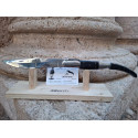 Navaja árabe con hoja de acero 3cr13mov, con muelles o carraca virola de acero, forros de acero, sistema de cierre de palanquilla, tamaño de hoja 13,50 cm y mango 16 cm, el mango se divide por dos cachas de madera de tintada en negro con adornos en él y en el centro acero.