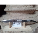 Navaja árabe siglo S.XIX , con muelles o carraca, acero 3cr13mov,virola repujada en acero con relieve ,cachas en im.ciervo ,muelle decorado en artesania ,palanquilla rodeada, tamaño de hoja 16,9 cm,tamaño total 39cm sistema de cierre de palanquilla