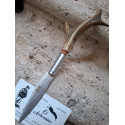 Navaja artesana todo hecho a mano , acero molibdeno vanadio, virola de acero, con cintillo de España ,mango de corzo con unas puntas , sin forros, sistema de cierre de fricción, tamaño de hoja 9cm, al ser natural no salen 2 piezas iguales