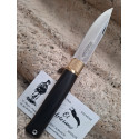 Novedad navaja José da Cruz, hoja de acero mova .con uñero para abrir con mejor facilidad, con virola de latón, mango de Ébano y boj interiormente, con agujero para cordón fiador, sistema de cierre con virola giratoria de latón, tamaño de hoja de 8,5 cm, tamaño mango 10,5 cm, con caja de la marca.