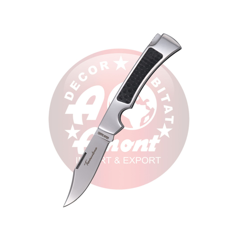 Navaja Gran Danés de Tramuntana Knives N93F mango con inserción de fibra de carbono, hoja de acero 440 acabada en brillo espejo de 7 cm, navaja de bloqueo trasero, Muelle decorado. Con caja de presentación. Ref. N93F
