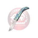 Navaja Rústica Tramuntana Knives N91DV mango de abulón y resina, hoja de acero de Damasco de 67 capas acabada martillada de 6,5 cm, navaja de doble pistón, Muelle decorado. Con caja de presentación. Ref. N91DV