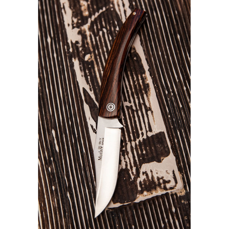 Navaja de Muela con hoja de acero 1.4116, mango en madera de cocobolo, sistema de cierre de pistón, tamaño de hoja 85 mm.