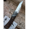 813 Navaja campera de Miguel Nieto, hoja de acero vanadio 1.4116, lleva la marca de denominación de origen, mango de ABS y cromo, lo puedes mojar y no le pasa absolutamente nada, virola de cromo decorada, remachada con forro de cromo. Sistema de cierre es el bloqueo. Tamaño de hoja de 9,50 cm y 11,50 cm de mango.