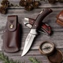 324-RF Navaja de caza de Cudeman modelo II con hoja de acero Bohler N690; longitud de hoja 9,5 cm; longitud de mango 11,5 cm; longitud total 21 cm; grosor de hoja 3 mm; virola de acero, mango de stamina peso navaja: 128 gr. extra: agujero para cordón fiador. CON FUNDA DE PIEL