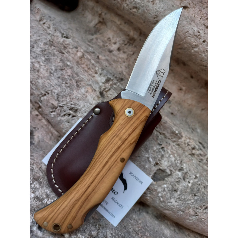 326-LF Navaja de Cudeman modelo Artemisa, hoja de acero böhler N-690Co, dureza 60/61 HRc, mango de madera de OLIVO, bloqueo trasero, tamaño de hoja 9,5 cm, tamaño de mango 11,5 cm, peso: 128 g. CON FUNDA DE PIEL