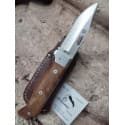 384-GF Navaja de Cudeman modelo MT-4, hoja de acero n690co böhler, mango de madera de nogal, sistema de bloqueo trasero, tamaño de hoja 10 cm y 12 cm de mango, atrás lleva un agujero para colgársela, con funda de cuero.
