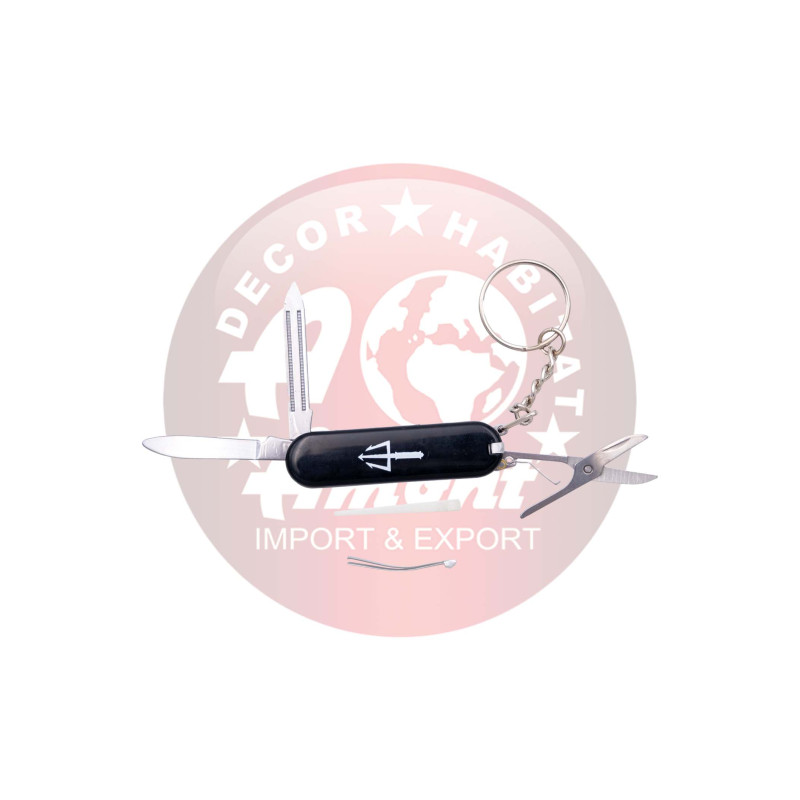 Navaja llavero multifunción Third SP02N mango de ABS negro con imprimación del tridente, hoja de acero inox de 3,8 cm, 5 con funciones ( navaja, lima, tijeras, pinzas, palillo). Ref. SP02N