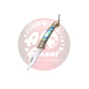 Navaja Miniatura Third modelo N89-7 hoja de acero 420 acabado brillo espejo de 2,9 cm, mango con virolas de latón e inserción de abulón, con caja de presentación. Ref. N89-7