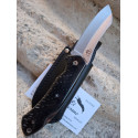 346-JNF Navaja Tundra Cudeman, hoja de acero bÖhler N690co, dureza 60-61 Hrc, punta tipo Sheep-foot, mango en juma negro, atornillado, tamaño de hoja 8 cm, tamaño total 18,8 cm, grosor de hoja 3 mm, ancho de pala 2 cm, con agujero para poner un cordón fiador, sistema de cierre de bloqueo. CON FUNDA DE PIEL.