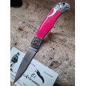 Navaja acero 3cr13mov, mango en acrílico ROSA ,virolas decorada, sistema de cierre de pistón, tamaño de hoja 8cm