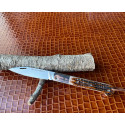 Novedad Navaja Nieto Cabritera en acero böhler N690 cobalto, virola de acero y cachas en hueso de ciervo,con un cordón en la parte trasera tamaño de hoja 9,5 cm, tamaño mango 11,5 cm, sistema de cierre de pistón.